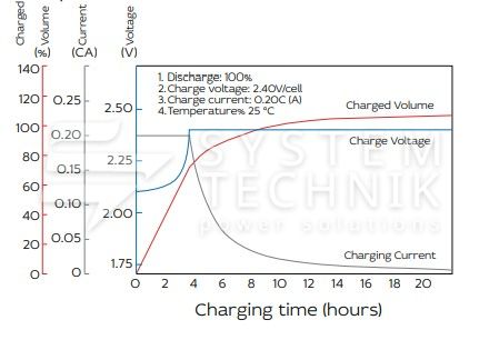 - Номинальное напряжение: 2В. Максимально допустимый ток заряда: 0,2C;