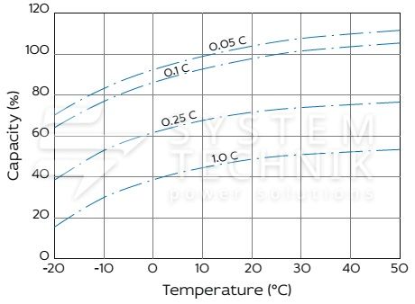 - Срок хранения без подзаряда: 6 мес. при 25°C;