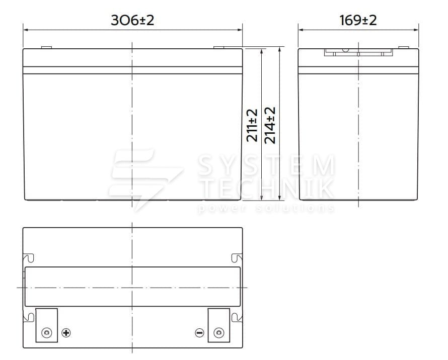 - Срок хранения без подзаряда: 6 мес. при 25°C;