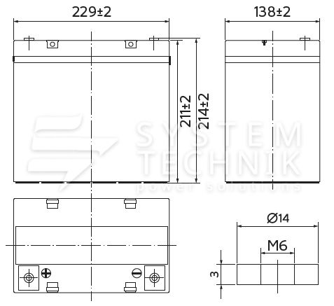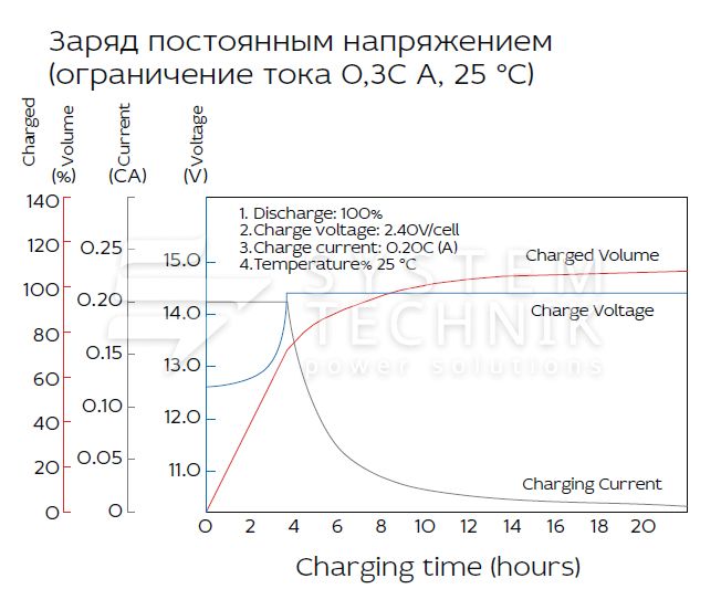- Срок хранения без подзаряда: 6 мес. при 25°C;