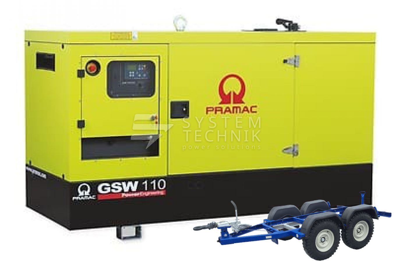 - Дизельный генератор Pramac GSW 110 V 400V В кожухе на прицепе