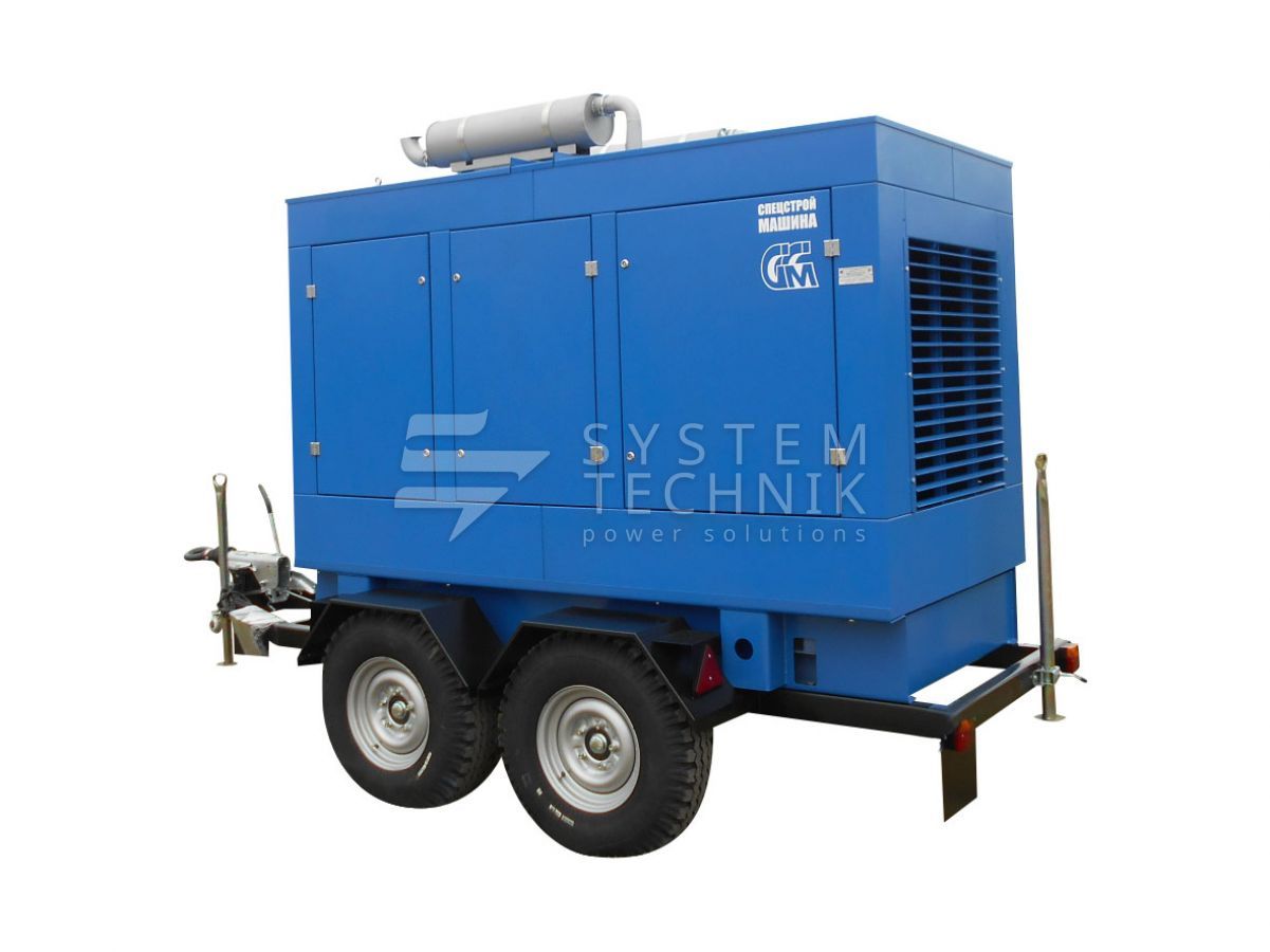 - ССМ ЭД-120-Т400-1РПМ2 в погодозащитном кожухе на шасси на прицепе