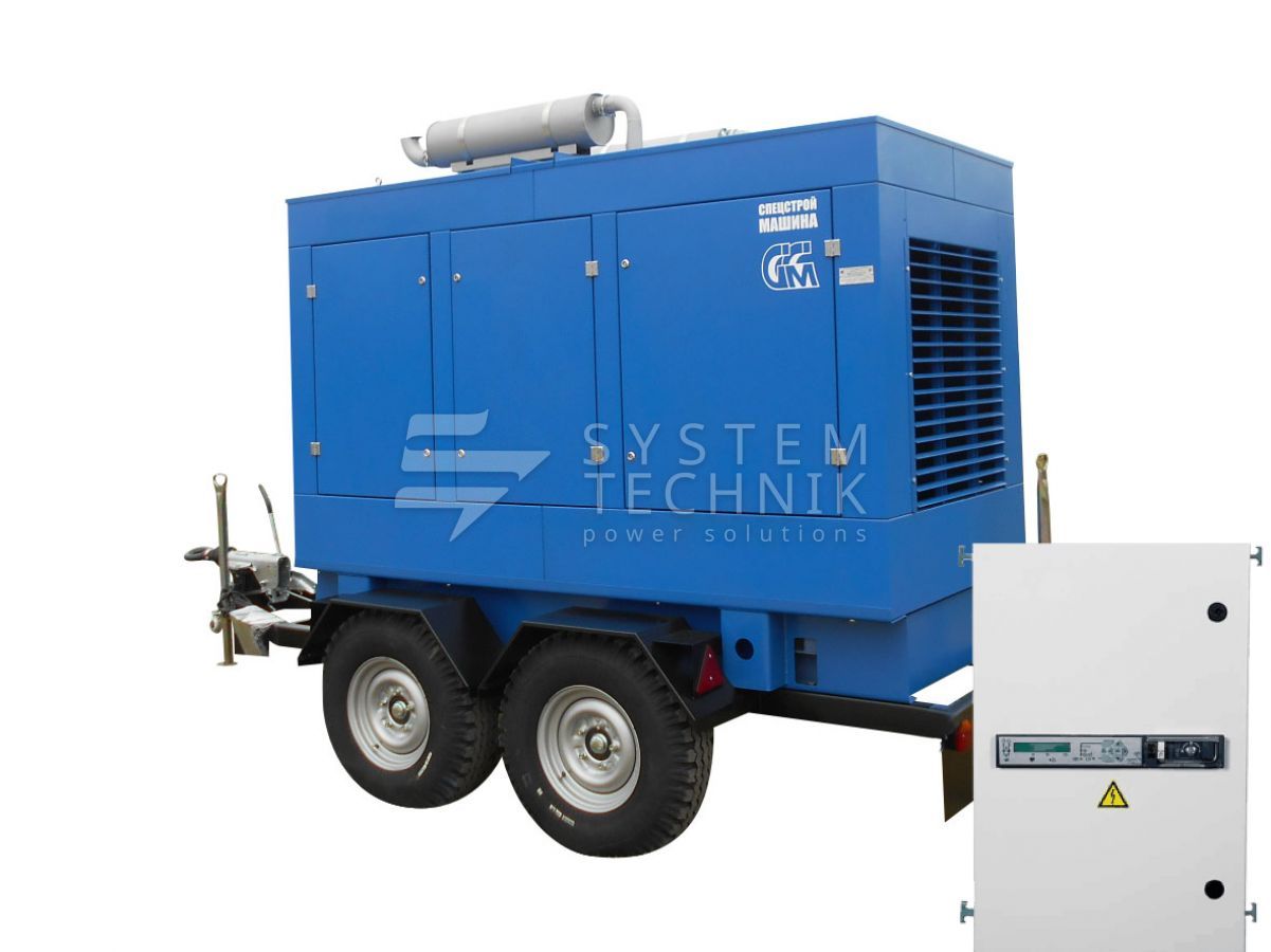 - ССМ ЭД-320-Т400-2РПМ2 в погодозащитном кожухе на шасси с АВР на прицепе