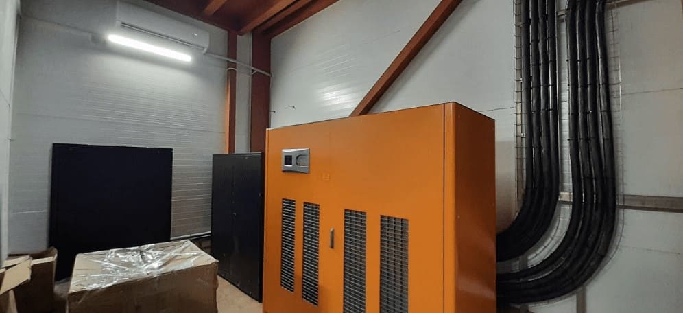 - Высокая плотность мощности. Площадь в основании менее 0,66 м2для устройства 300кВА, с плотностью мощности 409кВт/м2, тем самым сохраняя полезное пространство дата-центра